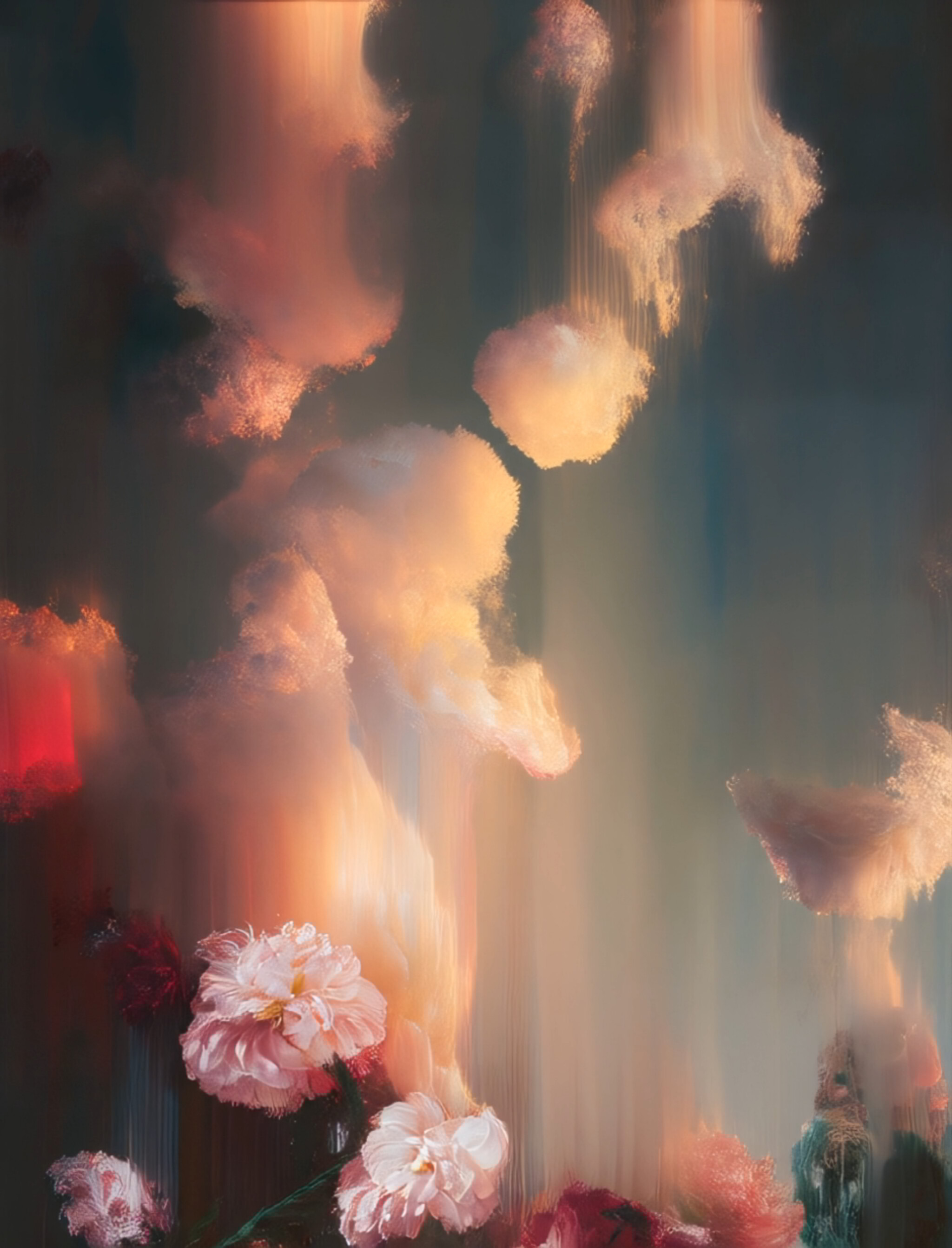 Flowers have always felt symbolic to me, not only for beauty, but for their cycles of opening, fading, and returning. They carry both fragility and resilience. In this piece, the forms seem to melt, bloom, and reassemble, echoing the way growth often happens, rarely in a straight line, and often through softness, disruption, and surrender.
